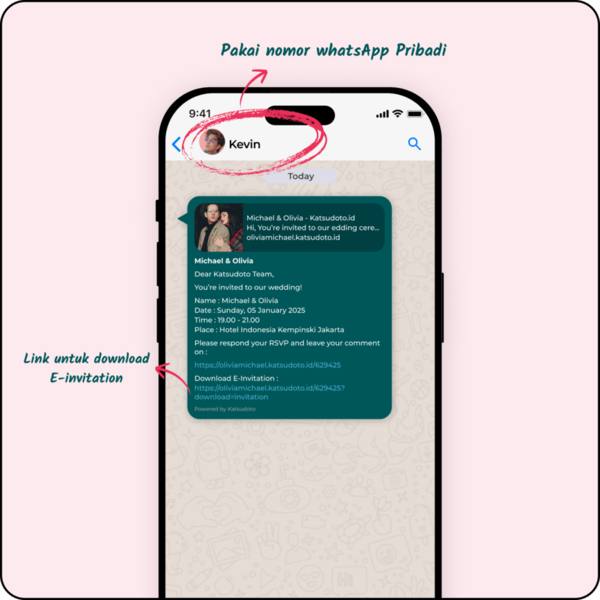 Merupakan sistem pengiriman undangan menggunakan WhatsApp pribadi kamu, dan dikirim manual satu persatu ke tamu yang dituju.