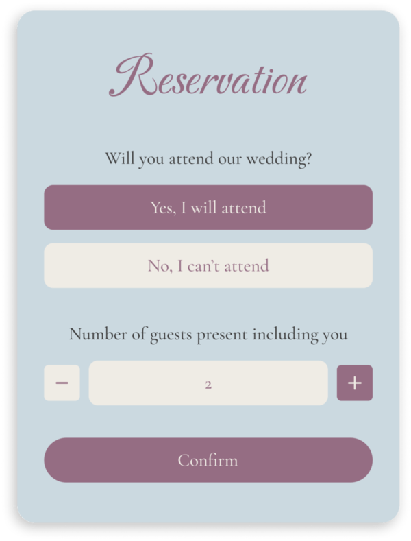 Dengan foto selfie, kehadiran tamu akan tercatat dengan lebih detail dan jadi kenang-kenangan yang berharga untuk pemilik acara dan tamu. Fitur Selfie Check-In juga bisa dinonaktifkan bila kamu menginginkannya.